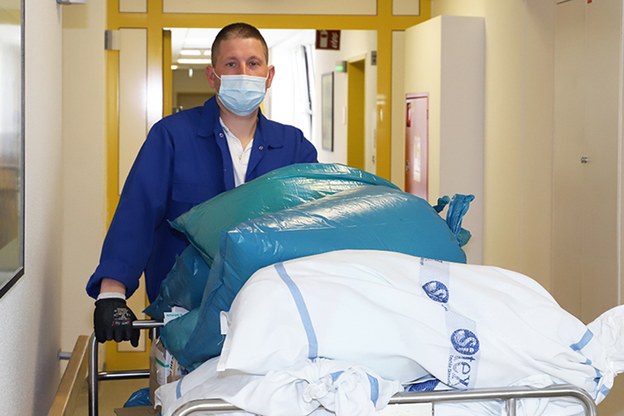 Der Bereich der Ver- und Entsorgung auf den Stationen gehört ebenfalls zu unserem Aufgabengebiet. So kümmern wir uns zum Beispiel darum, dass Ihre Schmutzwäsche und Müll da landet, wo er hingehört.