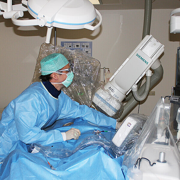 Bei Patienten mit paroxysmalem oder persistierendem Vorhofflimmern können wir mit der pulsed-field-ablation (PFA)-Methode eine sehr moderne und effektive Methode zur Behandlung anbieten. Dabei wird in einer Kurznarkose eine elektrische Isolation (Elektroporation) der Lungenvenen vom linken Vorhof vorgenommen.