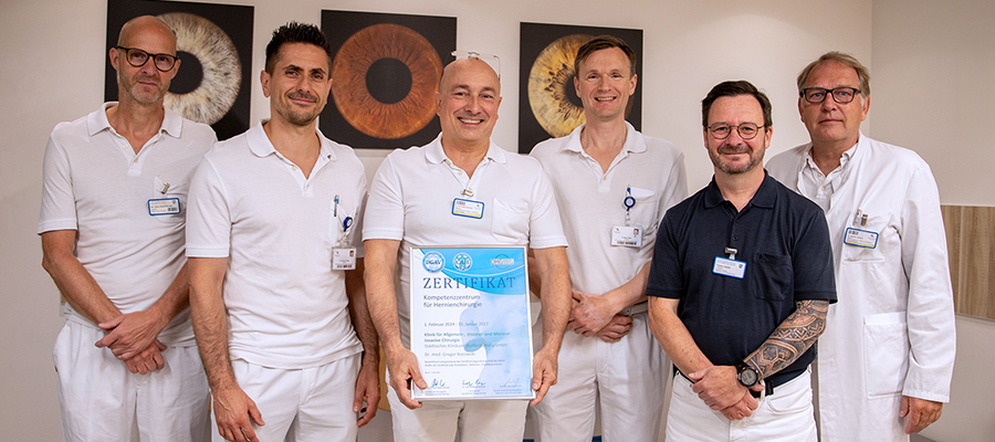 Seit 2012 ist unsere Klinik für Allgemein-, Viszeral- und Minimal-Invasive Chirurgie mit dem Siegel „Qualitätsgesicherte Hernienchirurgie“ der Deutschen Herniengesellschaft ausgezeichnet. Dadrüber hinaus sind wir seit 2015 als Kompetenzzentrum für Hernienchirurgie durch die Deutsche Gesellschaft für Allgemein- und Viszeralchirurgie zertifiziert (Audits DGAV: 2015, 2018 und 2021)