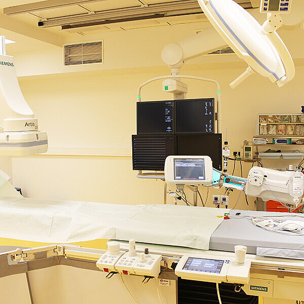 Hier werden alle gängigen Diagnostikverfahren der Herzgefäße inklusive Druckdahtmessung und intraskulärer Bildgebung durchgeführt. Therapeutisch wird neben einer 24-Stunden-Notfallbereitschaft zur Behandlung von Herzinfarkten das gesamte Spektrum der Koronartherapie angeboten. Hierzu stehen auch eine Mikroaxialpumpe zur Kreislaufunterstützung sowie eine Rotablationskonsole zur Behandlung von schwer verkalkten oder nicht aufdehnbaren Läsionen zur Verfügung.